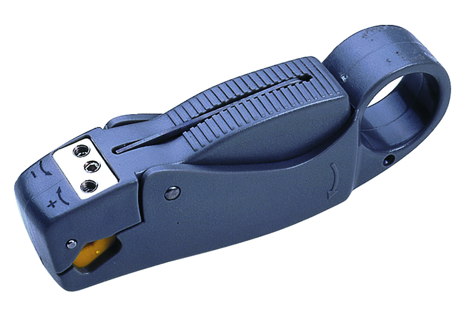 Abisolierwerkzeug Economy für Koaxialkabel, insbesondere RG 58, RG 59, RG 62, RG 6. Koaxialkabel für Audio-, Video-und TV-Anschluss (Antennenleitung) sowie Netzwerktechnik. Die Schnitttiefe der Messer ist einstellbar, 3 auswechselbare Messer, Schnittabstand wahlweise 8 mm, 6 mm und 4 mm