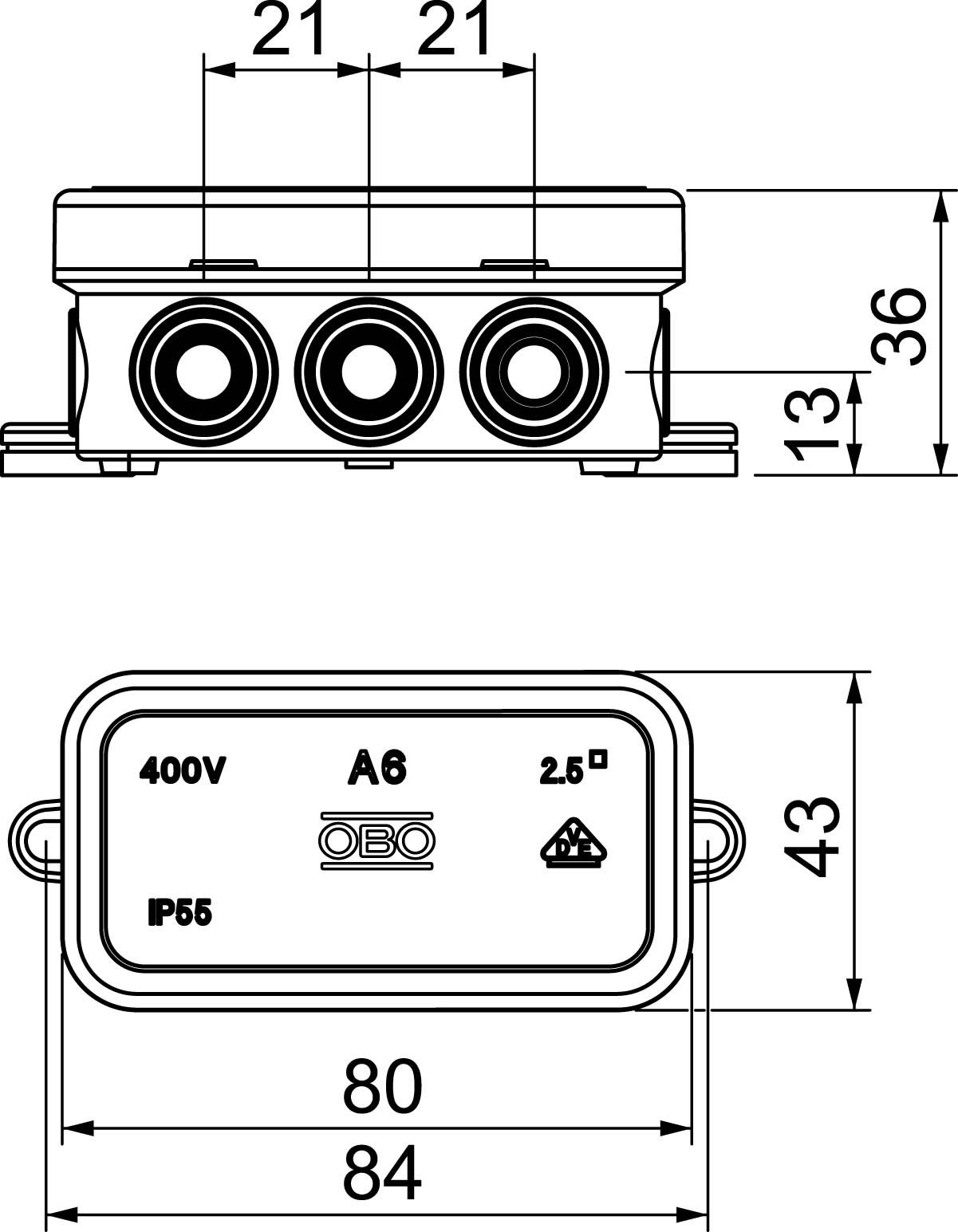 OBO Bettermann Vertr Kabelabzweigkasten 80x43x34mm A 6 HF RO