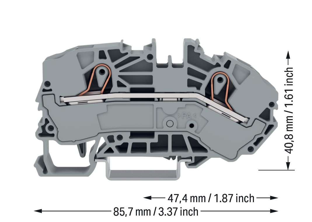 Die Durchgangsklemme mit der Artikelnummer 2016-7601 bietet eine reibungslose Elektroinstallation. Bei dieser Durchgangsklemme ist für den Leiteranschluss eine Abisolierlänge im Bereich von 18 bis 20 mm nötig. Die Durchgangsklemme erfüllt zudem auch die Funktion Einspeiseklemme. Dieses Produkt verwendet die Push-in CAGE CLAMP®-Technologie. Push-in CAGE CLAMP® ist der wartungsfreie Universalanschluss für alle Leiterarten mit dem Zusatznutzen des direkten Steckens: Push-in. Starre Leiter sowie feindrähtige Leiter mit Aderendhülse können ohne Werkzeug direkt gesteckt werden. Eine Vorbehandlung der Leiter, z.B. durch das Aufcrimpen von Aderendhülsen, ist nicht erforderlich. Diese Durchgangsklemme ist in Abhängigkeit von der Leiterart für Leiterquerschnitte von 0,5 mm² bis 16 mm² geeignet.