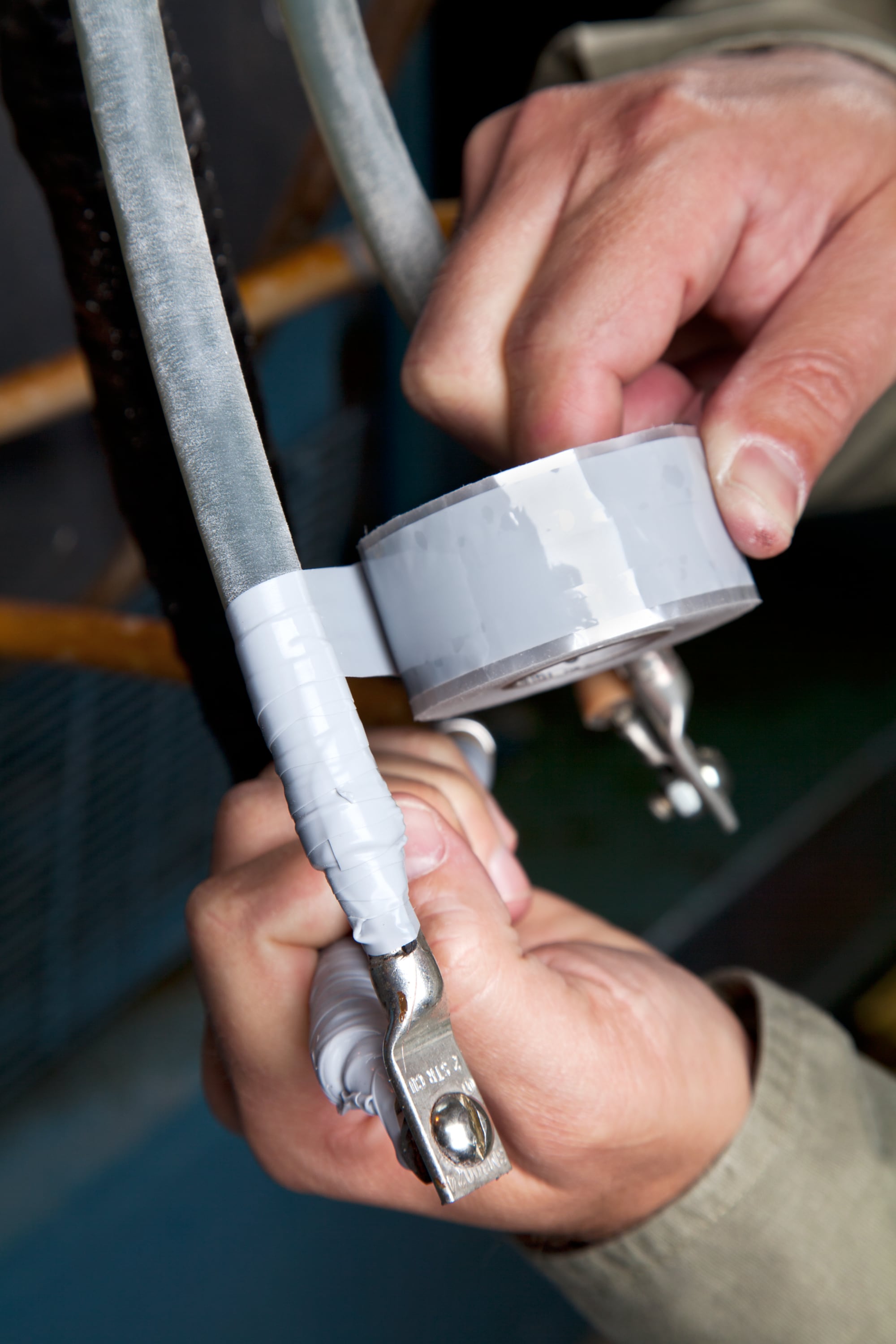 Das Scotch® 70 selbstvulkanisierende Silikon-Elektroisolierband wird als Schutzumhüllung für den Abschluss von Hochspannungskabeln verwendet.