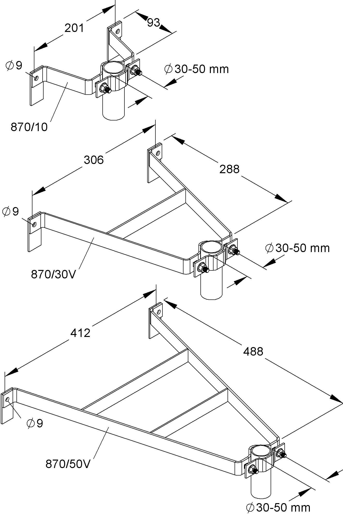 HKL Mast-Haltebügel für Rohr 30-50mm 870/10