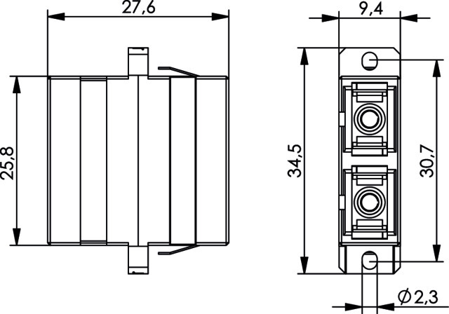 Bezeichnung: SC Duplex Kupplung, Multimode, Keramikhülse, Kunststoffgehäuse, inkl. selbstschneidende Befest.-Schrauben