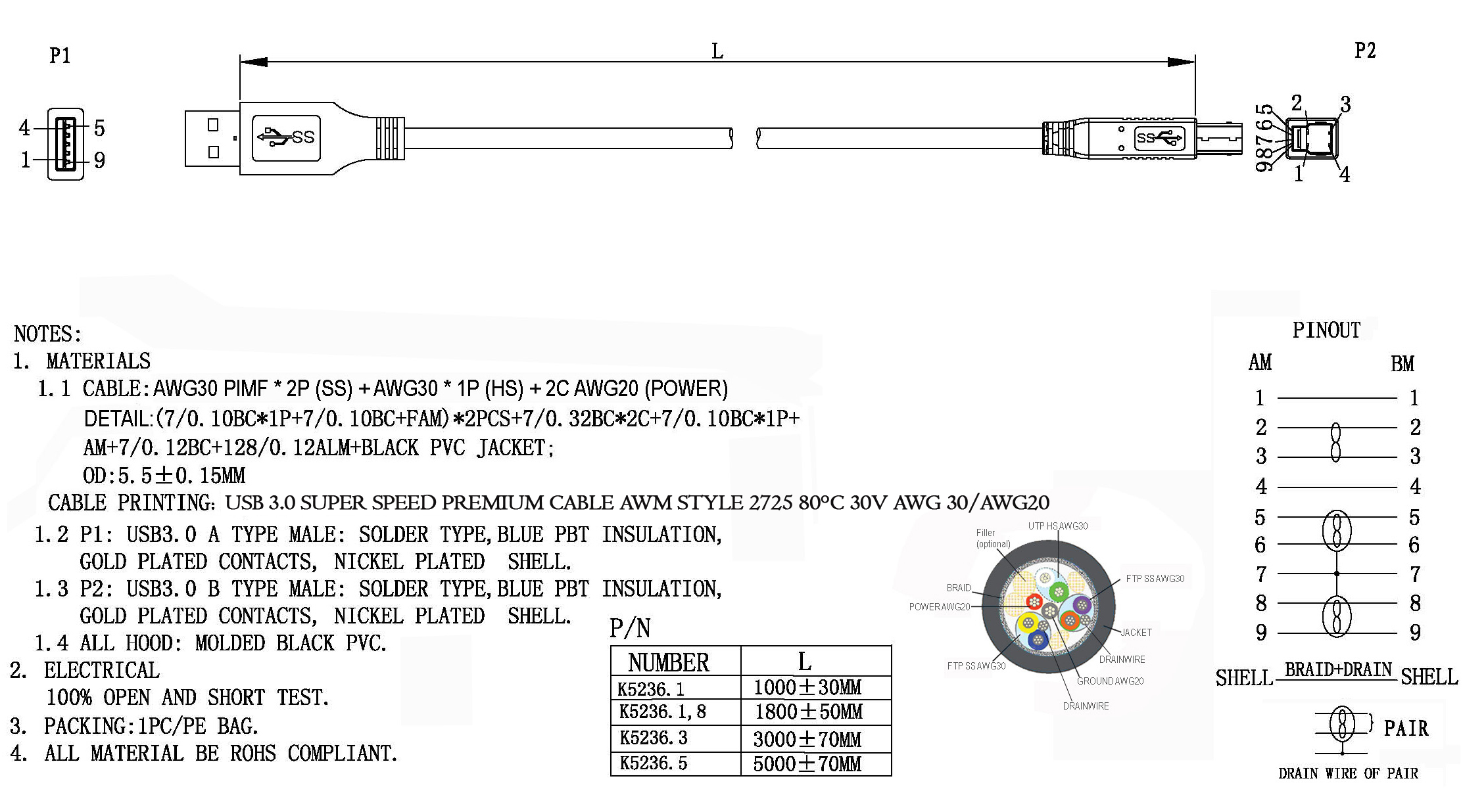 EFB-Elektronik USB-Verbindungskabel A-B 1,8m USB 3.0 schwarz K5236.1,8