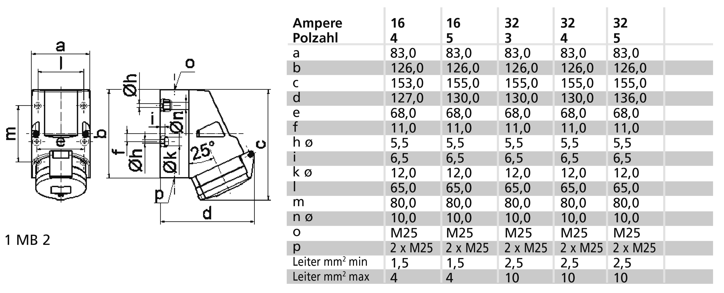 Kabeleinführung: 1xM25 oben, 2xM25 unten