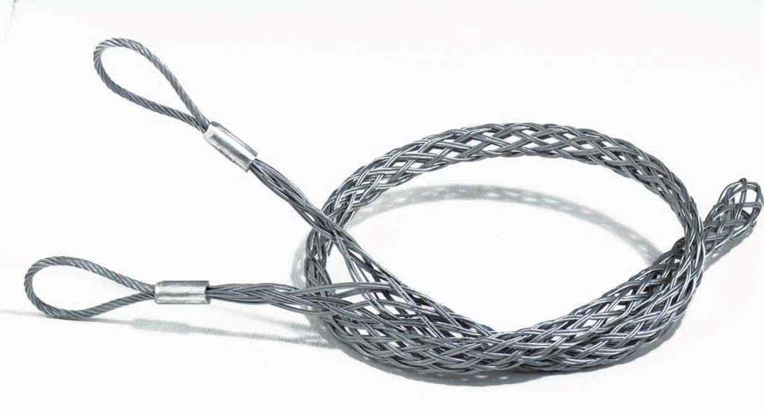 Katimex®Kabelziehstrümpfe aus verzinktem Stahldraht für die Erdverkabelung, mit 2 verpressten Seilschlaufen, 900 mm Wirklänge. Für Kabel mit einem Ø von 20-30 mm.