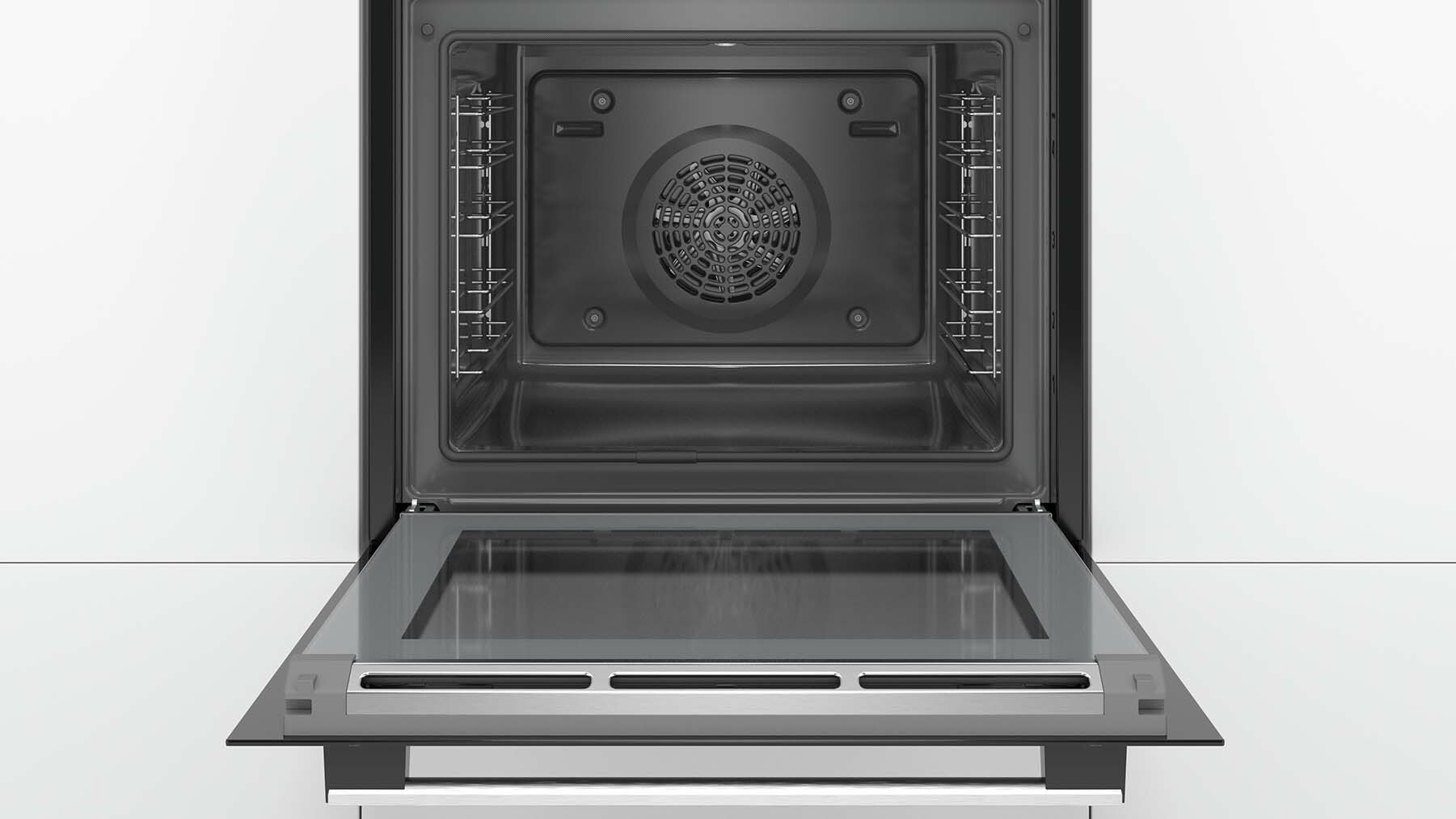 Backofentyp und Heizart Einbauherd mit 10_Beheizungsarten: 3D Heißluft, Ober-/Unterhitze, Umluftgrill, Großflächengrill, Pizzastufe, Unterhitze, Sanftgaren, Auftauen, Warmhalten, Heißluft Sanft Temperaturregelung von 30 °C - 275 °C Garraumvolumen: 71 l Zubehörträger / Auszugssystem: Einschubebenen: 5 Auszug nachrüstbar Design Drehwähler, Runde Bedienknebel, Versenkknebel Backofen mit GranitEmail Reinigung Selbstreinigungs-Technik (Pyrolyse) Reinigungsunterstützung Vollglas-Innentür Komfort Bedienung mit LCD-Display Elektronik-Uhr Optische Aufheizkontrolle Temperaturvorschlag Autostart AutoPilot AutoPilot 30 Programme Backofengriff aus Aluminium AutoPilot: Mit den Automatikprogrammen gelingt die Zubereitung immer. Einfach Gericht auswählen und Gewicht einstellen. Schnellaufheizung: Schnell zur Zieltemperatur ohne höheren Energieverbrauch Backofenbeleuchtung abschaltbar, Halogen-Innenbeleuchtung Kühlgebläse Zubehör 1 x Kombirost, 1 x Universalpfanne Umwelt und Sicherheit Sehr geringe Türtemperatur Niedrige Türtemperatur während der pyrolytischen Reinigung Kindersicherung Türverriegelung bei Pyrolysebetrieb Sicherheitsabschaltung Restwärmeanzeige Technische Info Nur zur Kombination mit einem Induktionskochfeld. Nennspannung: 220 - 240 V Gesamtanschlusswert Elektro: 11.4 kW Energieeffizienzklasse (gem. EU Nr. 65/2014): A(auf einer Energieeffizienzklassen-Skala von A+++ bis D) Energieverbrauch pro Zyklus im konventionellen Modus:0.99 kWh Energieverbrauch pro Zyklus im Umluft-Modus:0.81 kWh Zahl der Garräume: 1 Wärmequelle: elektrisch Innenraumvolumen:71 l Maße Gerätemaße (HxBxT): 595 x 594 x 548mm Nischenmaße (HxBxT): 604 mm x 560 mm x 550 mm Maße und Einbauhinweise zu diesem Gerät gemäß technischer Zeichnung beachten Um die technische und optische Kompatibilität zu gewährleisten, empfehlen wir Ihnen, Komplementär-Produkte innerhalb der Produktserie Serie 6 zu wählen, um die bestmögliche Einbausituation Ihrer Einbaugeräte zu gewährleisten.