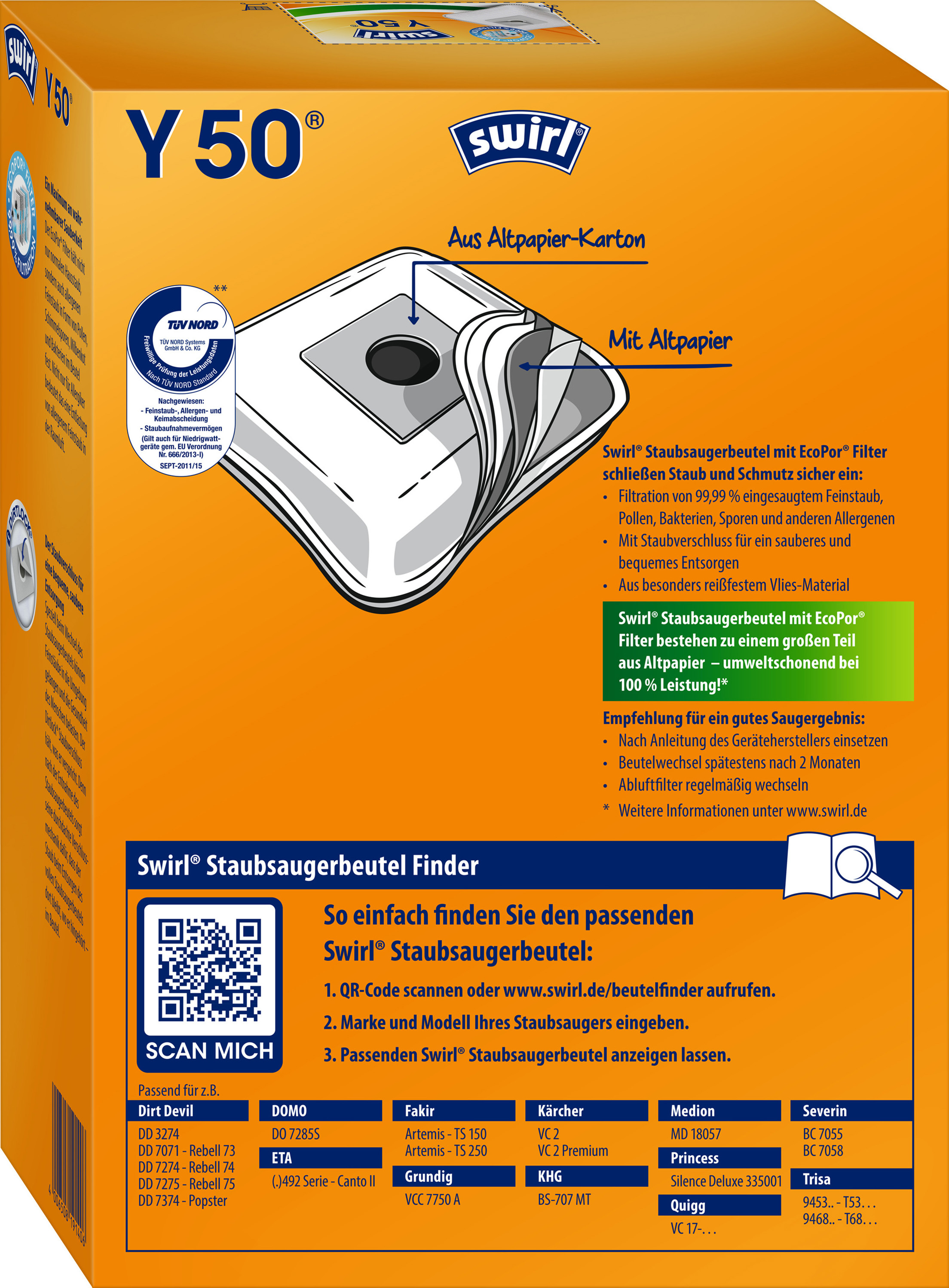 Swirl® MicroPor® Plus Green Staubsaugerbeutel mit erhöhtem Anteil an recycelten Materialien und nachwachsenden Rohstoffen, ressourcenschonend durch den Einsatz von bis zu 65% Recyclingmaterial und nachwachsenden Rohstoffen (je nach Staubsaugerbeuteltyp), MicroPor® Plus Filtration mit Anti-Allergen-Filter hält nicht nur normalen Hausstaub, sondern auch allergenen Feinstaub im Beutel fest, praktischer Dirtlock® Staubverschluss für eine bequeme, staubfreie Entsorgung des vollen Staubsaugerbeutels, Feinstaub-, Allergen- und Keimfiltration sowie Staubaufnahmevermögen vom TÜV NORD zertifiziert - auch für Niedrigwattgeräte gem. EU Verordnung Nr. 666/2013-I, Swirl® MicroPor® Plus Staubsaugerbeutel werden zu 100 % in Deutschland gefertigt, Verpackung zu 100 % aus Altpapier und vollständig recycelbar, optimale Passform und lange Nutzungsdauer dank abgerundeter Ecken und Volumen-Staubspeicher, jede Verpackung mit praktischer Einkaufshilfe, geeignet für übrige Marken Staubsauger