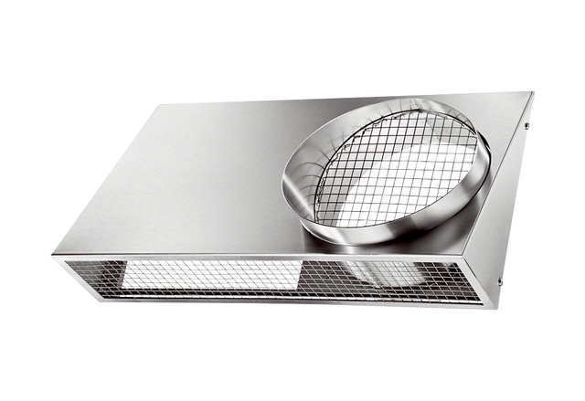 - Außenluft wird von unten angesaugt und die Fortluft nach vorne ausgeblasen. Somit ist eine Vermischung der beiden Luftströme minimiert.