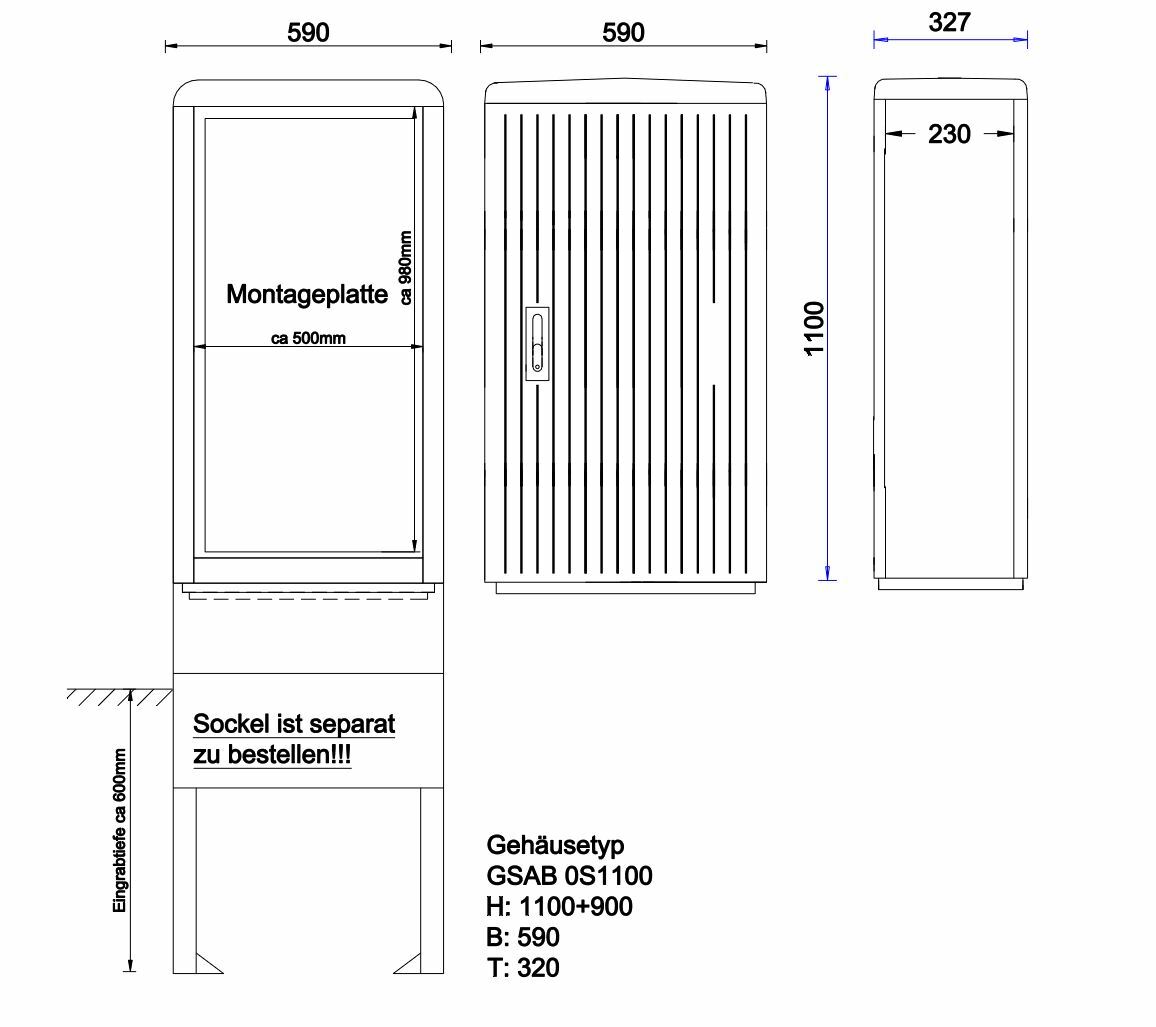 GSAB Elektrotechnik KVS mit Montageplatten H1100 x B 590 x T320 0S1100M