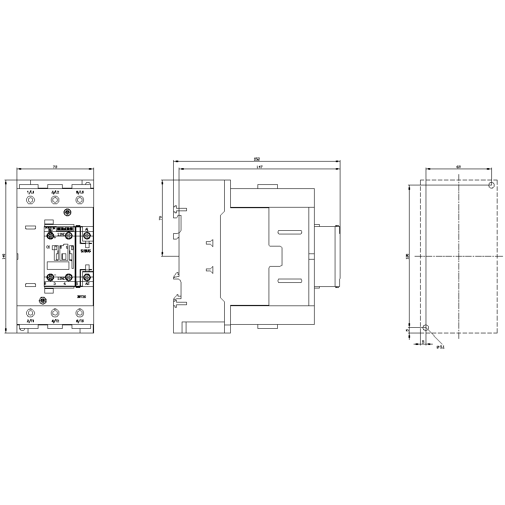 Siemens Dig.Industr. Schütz AC-3e, 110A/400V, 3p 3RT2047-1SP30