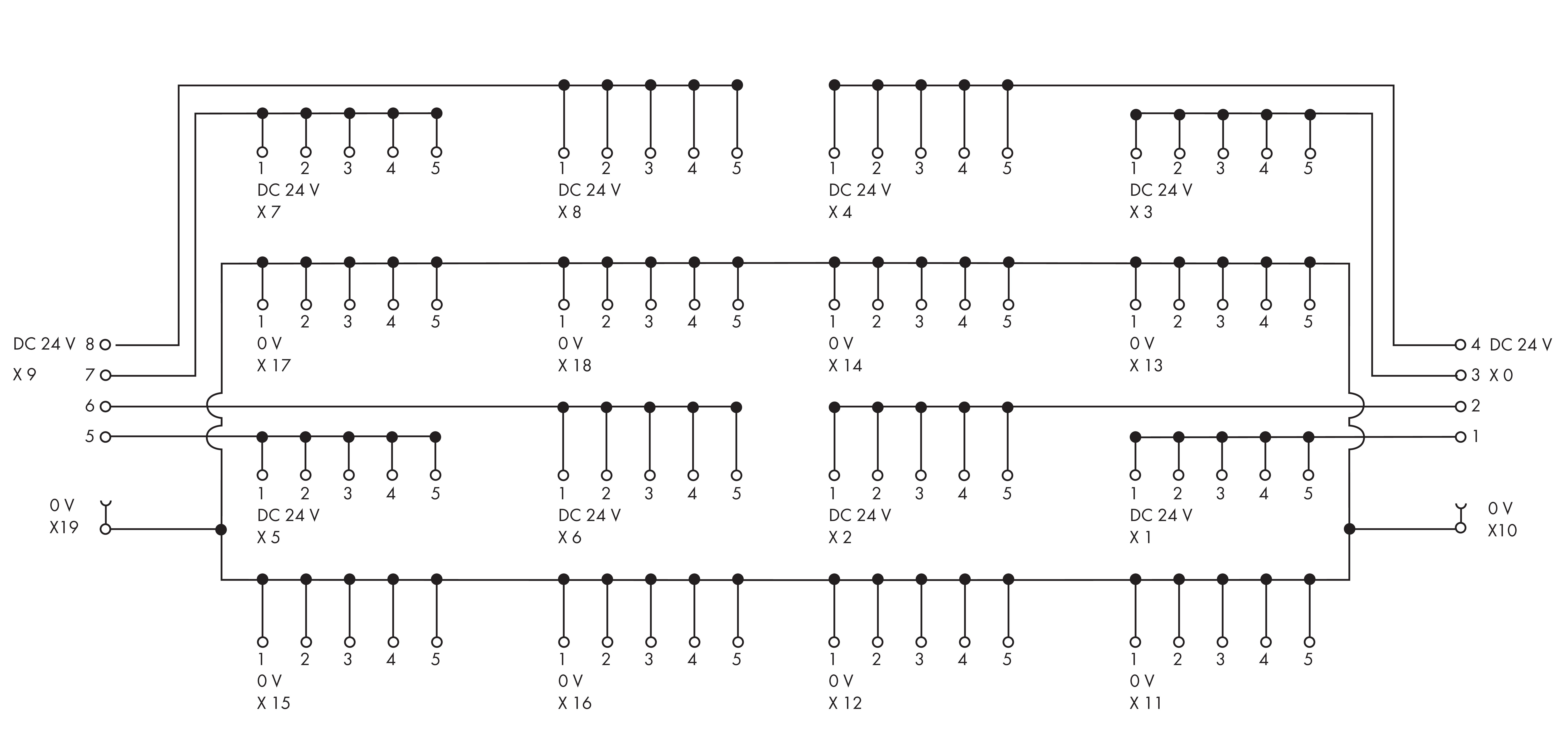 Einsatz z. B. an elektronischen Schutzschaltern zur Verteilung von DC 24 V und 0 V, als Ersatz für Reihenklemmen.