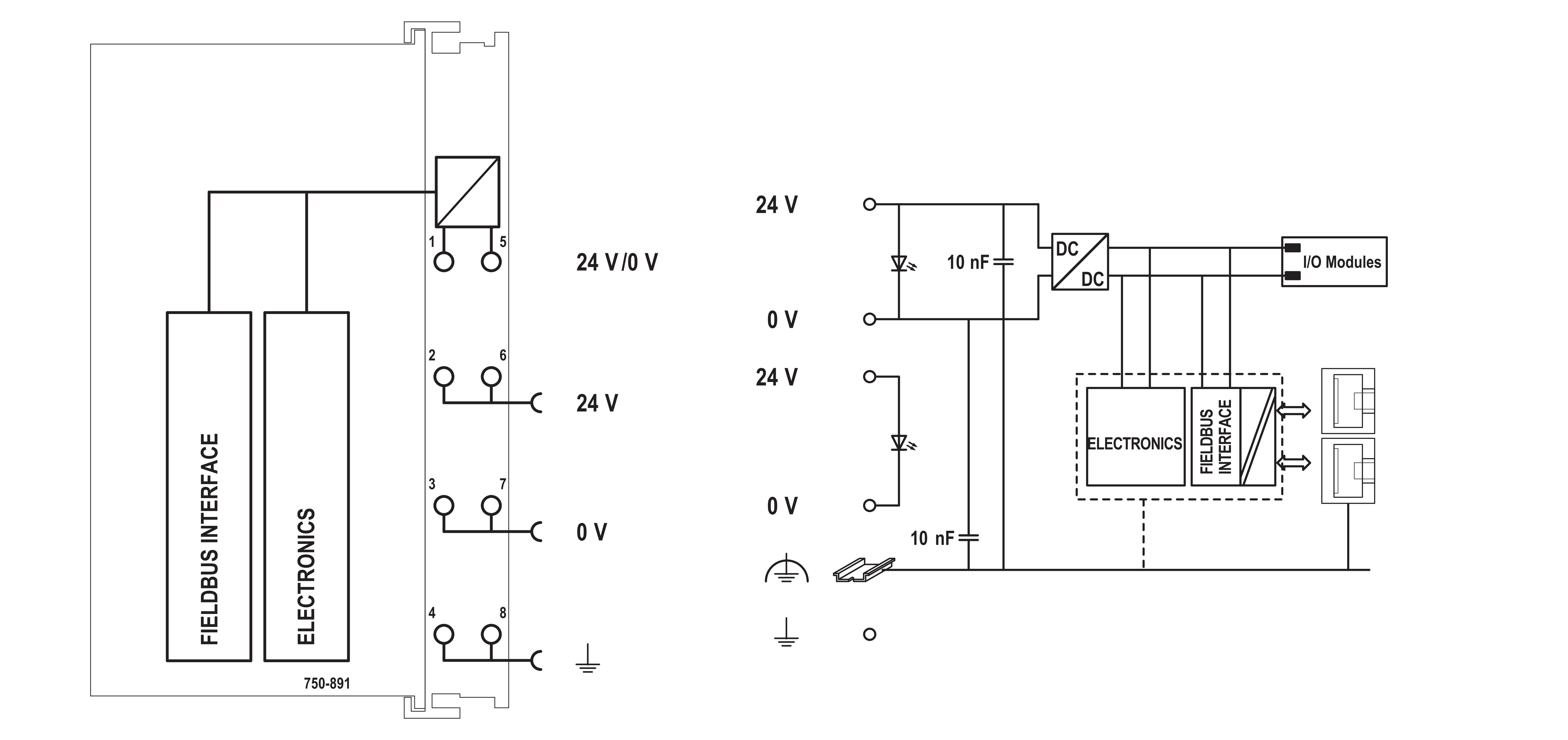 Die zwei ETHERNET-Schnittstellen und der integrierte Switch ermöglichen die Verdrahtung des Feldbusses in Linientopologie. Zusätzliche Infrastrukturelemente wie Switch oder Hub können somit entfallen. Beide Schnittstellen unterstützen Autonegotiation und Auto-MDI(X).