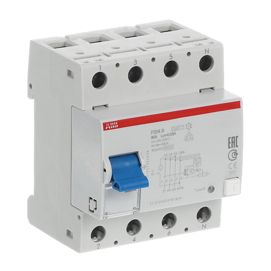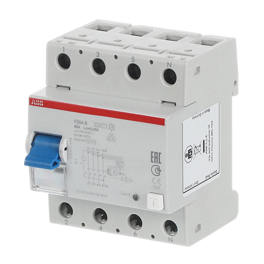 ABB Stotz S&J FI-Schutzschalter 4P,TypB,80A,30mA F204B-80/0,03