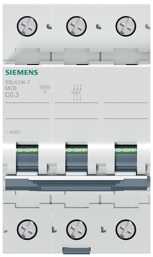 Siemens Dig.Industr. Leitungsschutzschalter 400V,10KA,3p.,C,0,3A 5SL4314-7