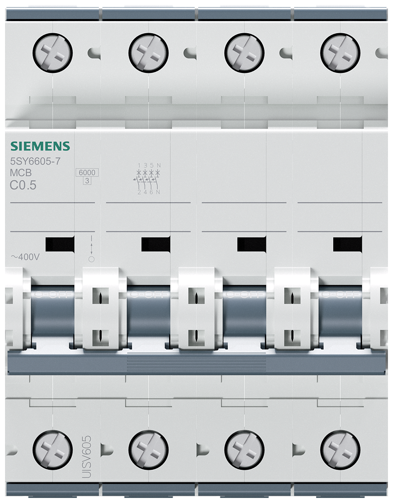 Siemens Dig.Industr. Leitungsschutzschalter 400V 6kA 3+N C 0.5A 5SY6605-7