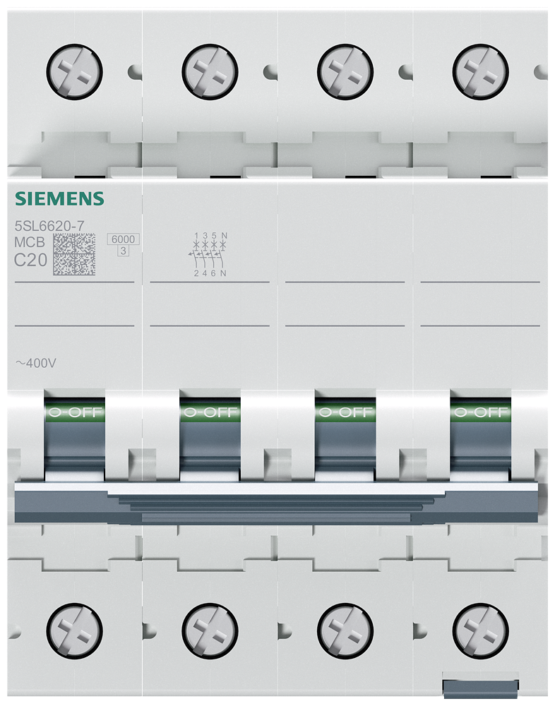 Siemens Dig.Industr. Leitungsschutzschalter 400V 6kA 3+N C 20A 5SL6620-7