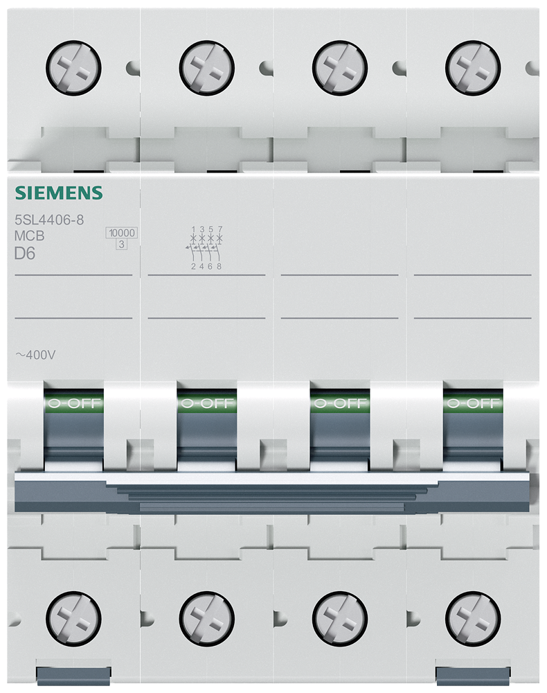 Siemens Dig.Industr. Leitungsschutzschalter 400V,10KA,4p.,D,6A 5SL4406-8