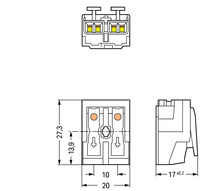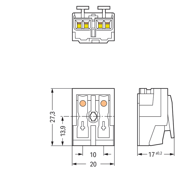 weißExterner Anschluss von eindrähtigen, mehrdrähtigen und feindrähtigen Leitern.