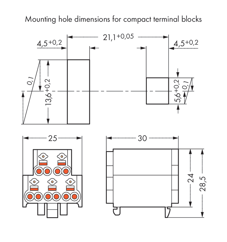 Die Netzanschlussklemme hat die Artikelnummer 272-122 und bietet eine reibungslose Elektroinstallation. Für den Leiteranschluss werden bei dieser Netzanschlussklemme Abisolierlängen von 8 bis 9 mm benötigt. Bei diesem Produkt kommt die PUSH WIRE®-Technologie zum Tragen. Einfach und schnell: Der Steckklemmanschluss PUSH WIRE® ist die unkomplizierte und schnelle Möglichkeit, einen knickfesten Leiter anzuschließen. In Breite x Höhe x Tiefe sind die Abmessungen (25 x 28,5 x 30) mm.