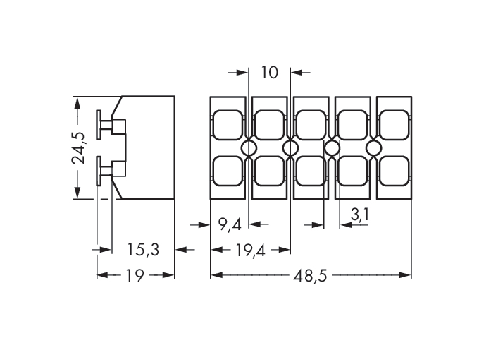 WAGO GmbH & Co. KG Netzanschlussklemme ohne Rastfüße,weiß 272-305