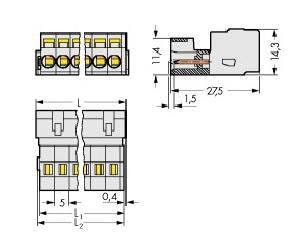 Die Stiftleiste (Artikelnummer 721-604/000-042) bietet eine reibungslose Elektroinstallation. Setzen Sie beim Design-In Ihres Gerätes auf zuverlässige Sicherheit: Mit Leiterplatten-Steckverbindern haben Sie verschiedene Verwendungsmöglichkeiten. Diese Stiftleiste benötigt für den Leiteranschluss eine Abisolierung mit Längen zwischen 8 und 9 mm . Dieses Produkt verwendet die CAGE CLAMP®-Technologie. Der erprobte und wartungsfreie CAGE CLAMP® Universalanschluss ermöglicht den Anschluss aller Leiterarten mit einer Käfigzugfeder. Eine Vorbehandlung der Leiter, z.B. durch das Aufcrimpen von Aderendhülsen, ist nicht erforderlich. Die Maße sind in Breite x Höhe x Tiefe (23,2 x 14,3 x 27,5) mm. In Abhängigkeit von der Leiterart ist die Stiftleiste für Leiterquerschnitte von 0,08 mm² bis 2,5 mm² gemacht. Für die Oberfläche der Kontakte wurde Zinn eingesetzt. Durch ein Betätigungswerkzeug wird diese Stiftleiste/Stecker betätigt. Das MCS "