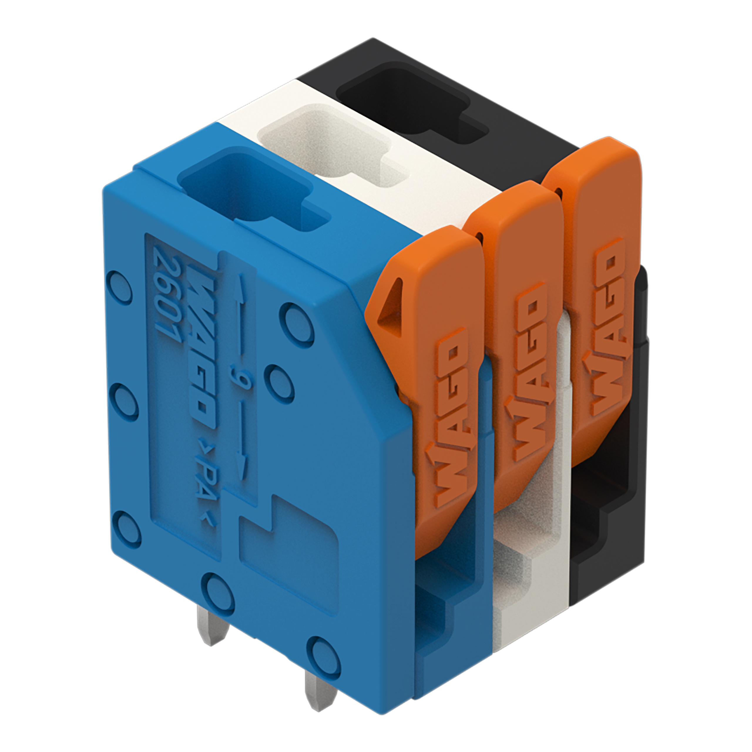 mehrfarbigLeiterplattenklemmen mit Push-in CAGE CLAMP®-Anschluss und Hebeln.