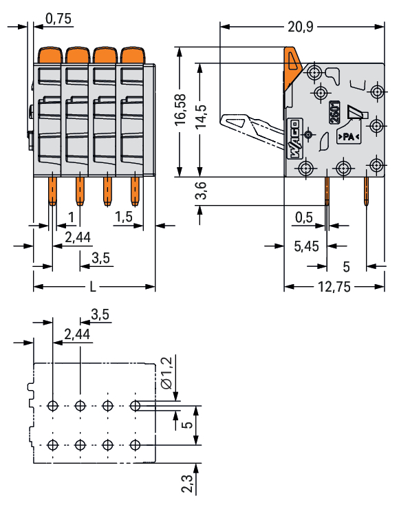 WAGO GmbH & Co. KG Leiterplattenklemme 2601-3103/987-200