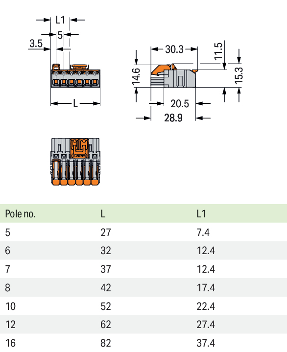 WAGO GmbH & Co. KG 1-Leiter-Federleiste Push-in CAGECLAMP,gr 2231-1105/328-000