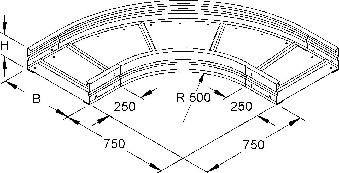 Niedax Bogen 90Gr. 150x500mm WRBR 150.500 E3