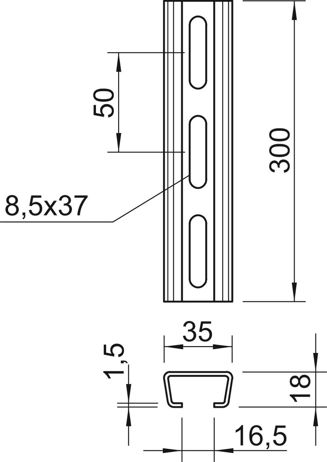 OBO Bettermann Vertr Profilschiene gelocht SW 16,5mm 300x35x18 AML3518P0300FT/1