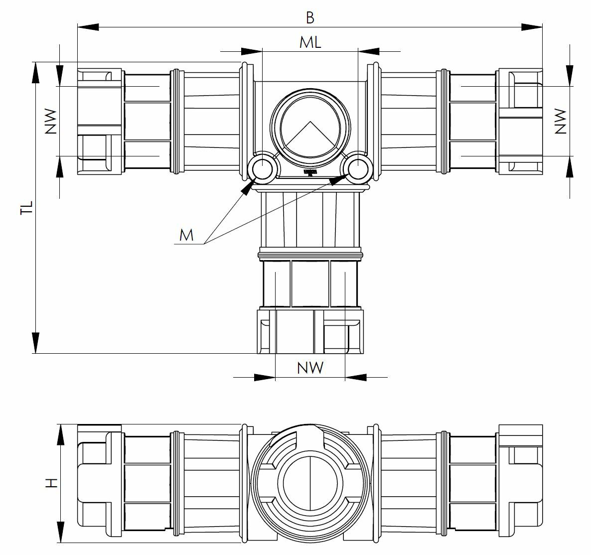 Wiska T-Verbinder für Wellrohre NW17-17-17, blaugrau BFT-17-17-17-BG