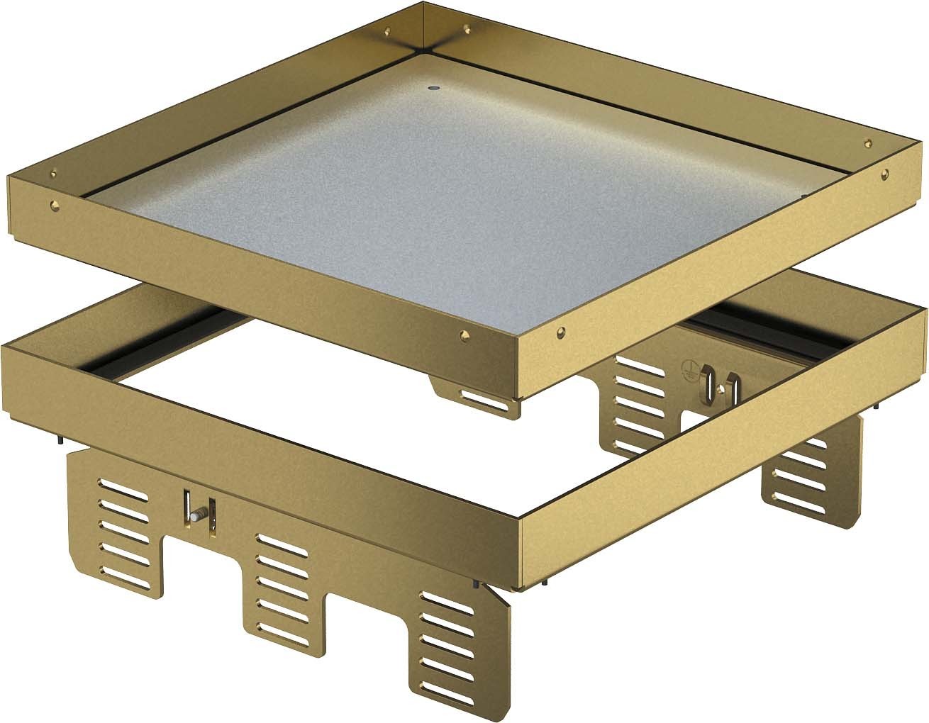 für die Herstellung einer Revisionsöffnung der Nenngröße 9 in trocken oder nass gepflegten Fußböden im Innenbereich, zur Montage in Unterflurdosen UZD250-3 oder UZD350-3, jeweils in Verbindung mit einem Montagedeckel DUG../9 oder in UGD250-3/9 oder UGD350-3/9. Die Montage erfolgt mittels Nivellierwinkel (separat bestellen) im Aluminium-Rahmenprofil der Unterflurdosen. Nur für glatte Bodenbeläge geeignet.