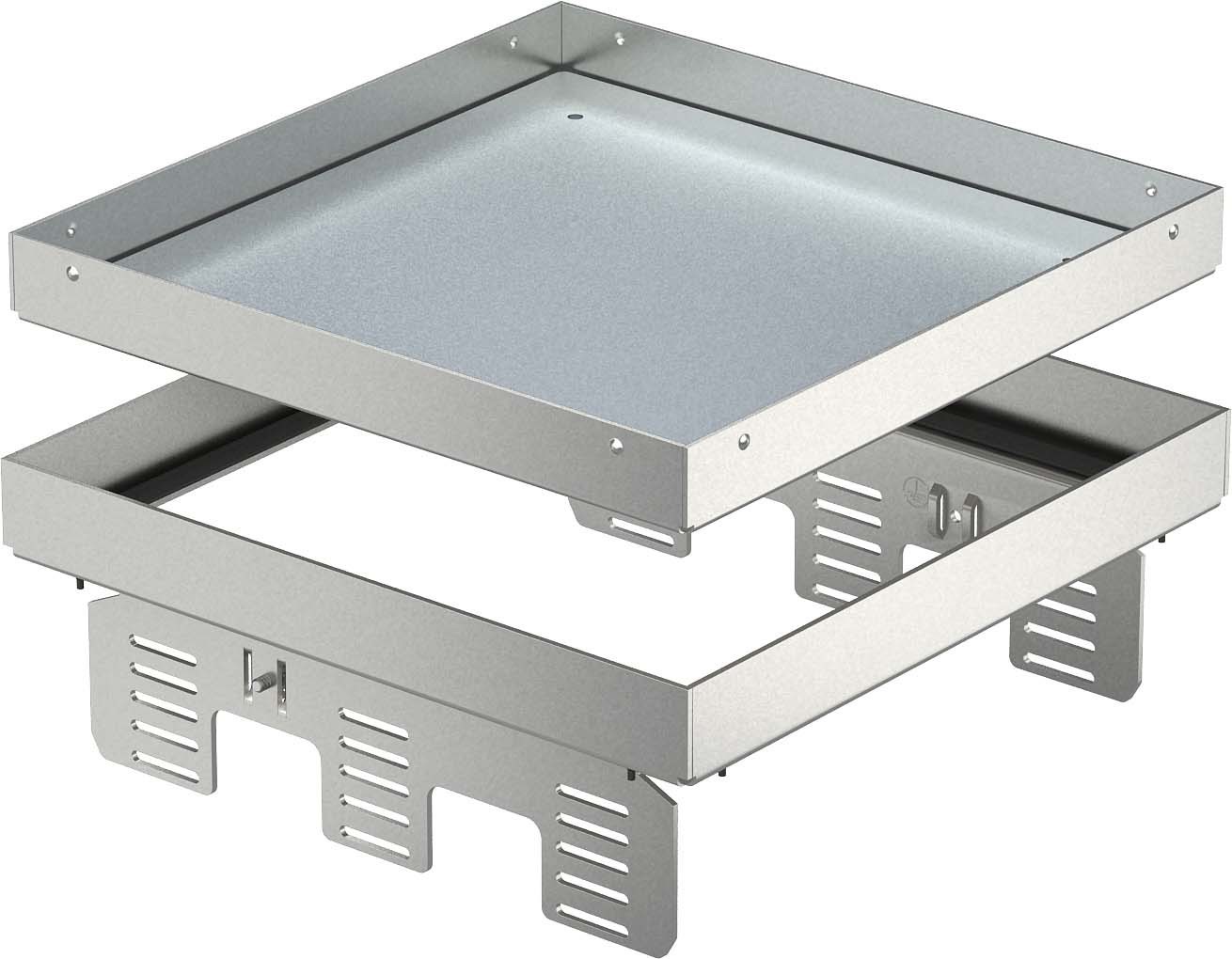 für die Herstellung einer Revisionsöffnung der Nenngröße 9 in trocken oder nass gepflegten Fußböden im Innenbereich, zur Montage in Unterflurdosen UZD250-3 oder UZD350-3, jeweils in Verbindung mit einem Montagedeckel DUG../9 oder in UGD250-3/9 oder UGD350-3/9. Die Montage erfolgt mittels Nivellierwinkel (separat bestellen) im Aluminium-Rahmenprofil der Unterflurdosen. Nur für glatte Bodenbeläge geeignet.