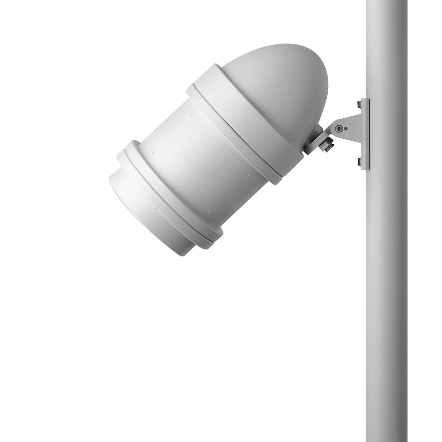 Leuchtengehäuse aus hochkorrosionsbeständigem Aluminium-Druckguss AlSi12 (Leg. 230) und Aluminiumprofil, Polyesterpulver beschichtet in hochwertig deckendem und UV-stabilen Schichtverfahren, Farbe: silbergrau , alle äußeren Stahlteile aus rostfreiem Edelstahl, temperaturwechselbeständiges Sicherheitsglas (ESG) - einseitig entspiegelt, Silikondichtung, zur Befestigung an Masten, Ø 60 - 100 mm, schwenkbarer Leuchtenfuß aus beschichtetem Aluminium: 2 Bohrungen Ø 9 mm, Neigungsbereich: 80°, Kabelanschluss: M20, Anschlussklemme: 5-polig, Schwenkbereich: 180°, fokussierbares Objektiv mit präziserer Lichtverteilung erzeugt randscharfe begrenzte Projektionen mit hoher Abbildungsqualität, Betriebsgerät (dimmbar DALI) eingebaut, CRI > 70, Halbstreuwinkel: 41°, Leuchtenlichtstrom: 1724 lm, Anschlussleistung: 55 W, System-Lichtausbeute 31 lm/W, Schutzart IP67, Schutzklasse I, Schlagfestigkeit IK08, Windangriffsfläche 0,085 m², Abmessungen: Ø 240 mm, Breite 425 mm, Gewicht 7.4 kg