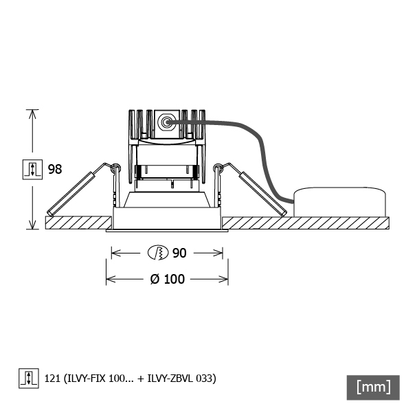 Ausschnittsmaß: 90 mm