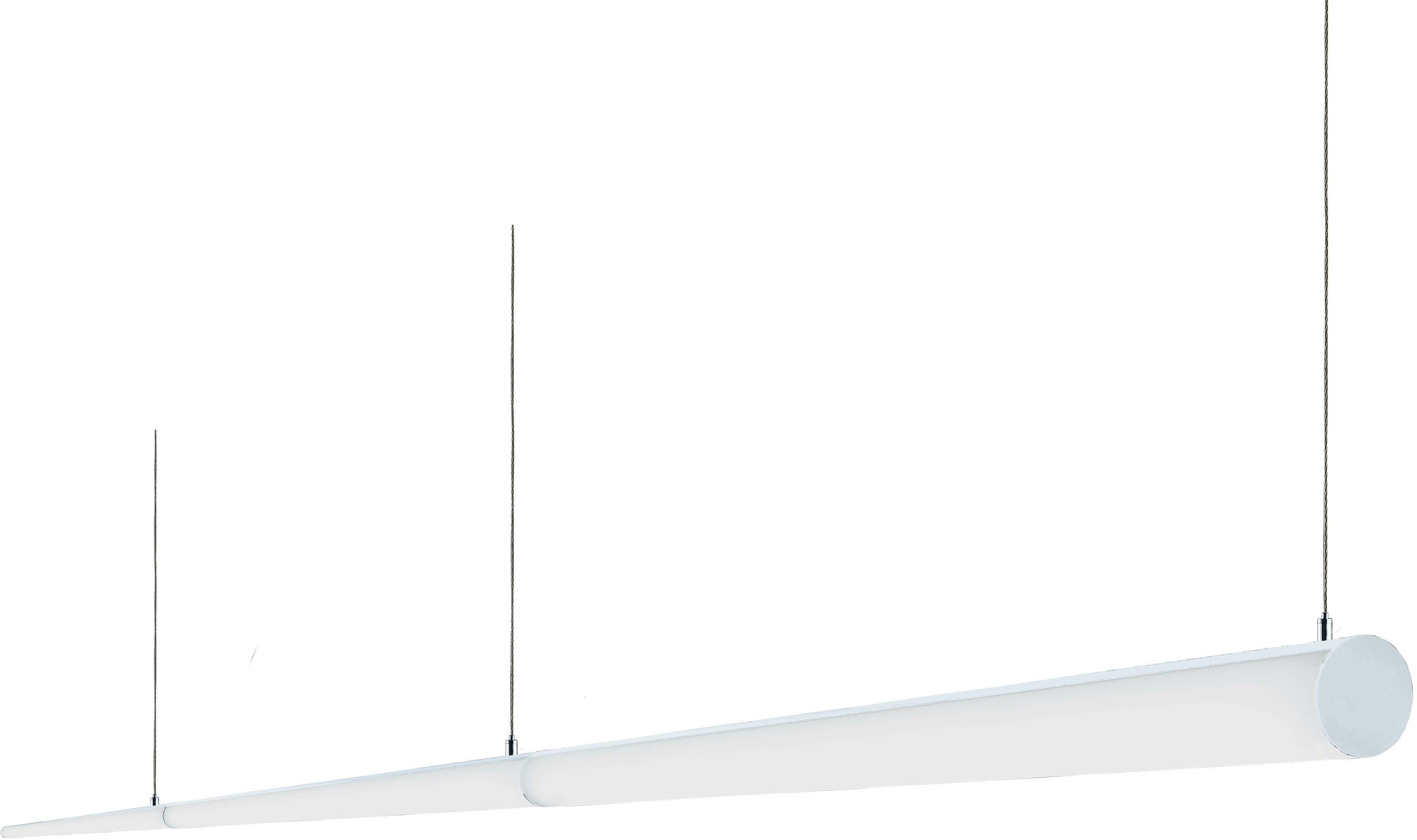 Pendelrohrsystem mit opaler Optik, Ausstrahlwinkel von 270°, absolut gleichmäßige Lichtverteilung erhellt sowohl die Nutzfläche als auch die Vertikalebene, Hohe Farbortstabilität < 3-step MacAdams (SDCM), Inklusive Doppel-Seilaufhängung mit transparenter Zuleitung, werkseitig vormontiert, stufen- und werkzeuglose Höhenverstellung, Aufhängepunkte (Clips) werkzeuglos verschiebbar, Inklusive LED-Betriebsgerät in Leuchtengehäuse integriert, Inklusive Baldachin D 90 mm x H 30 mm, , ,