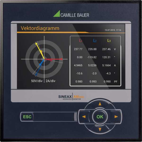 Transparente Überwachung von Netzqualität und Energieverbrauch. Der SINEAX AM2000 ist ein Kompaktgerät für die Messung und Überwachung in Starkstrom-Netzen. Er besticht durch die Qualität der Anzeige und die intuitive Bedienung. Das Gerät stellt eine breite Funktionalität zur Verfügung, welche sich mit optionalen Komponenten noch weiter ausbauen lässt. Das moderne, mehrsprachige Design erlaubt das Gerät intuitiv über die Geräte-Website (Option Ethernet erforderlich) oder das hochauflösende Farb-TFT Display (800x480px) zu bedienen oder zu parametrieren. Der Webserver ermöglicht die Fernabfrage, Anzeige und Analyse der Messdaten. Es ist keine zusätzliche Software erforderlich. . Netzzustand Bereitstellung aller Spannungen, Ströme, Leistungen, Leistungsfaktoren alle 10/12 Perioden Erweiterte Blindleistungsanalyse Varianz der Netzgrössen mit Zeitreferenz Energiefluss-Analyse Leistungsmittelwerte mit Trendanalyse zur Vermeidung von Lastspitzen Optional: Lastgang-Speicherung mit Schwankungsbandbreite (Min/Max) pro Intervall Wirk-/Blindenergie Klasse 0.5S (HT/NT, Bezug/Abgabe), programmierbare Auflösung Weitere Mittelwerte und Zähler mit wählbarer Basisgrösse Netzqualität Oberschwingungsanalyse nach IEC61000-4-7 Bewertung der Unsymmetrie der Spannungen und Ströme Vektor- und Drehrichtungsanzeige zur Anschlusskontrolle Kurvenformdarstellung Optionaler Störschreiber für PQ-Ereignisse (Spannungseinbruch, Spannungsüberhöhung, Spannungsunterbruch) nach IEC 61000-4-30 Ed.3 mit RMS1/2- und Kurvenformspeicherung Hardware-Option Analogausgänge ±20mA (2/4), Relaisausgänge (2), Digitaleingänge (4) aktiv / passiv, GPS-Zeitsynchronisation, Fehlerstromerkennung (Differenz- oder Erdleiterstrom), Temperaturüberwachung (Pt100, PTC), IEC61850 oder Profinet I/O Kommunikation Optional: Ethernet (Modbus/TCP, http/https, NTP, SFTP, SYSLOG), IEC61850, Profinet I/O, Modbus/RTU Automatisierter Daten-Export auf SFTP-Server (Option Ethernet erforderlich) Security (Option Ethernet erforderlich) Flexible Rollenbasierte Zugriffskontrolle Verschlüsselte Kommunikation via HTTPS Audit-Log registriert alle sicherheitsrelevanten Vorgänge, Unterstützung von SYSLOG für den Transfer an zentralen Überwachungsserver Client-Whitelist: IP-Adressliste zur Einschränkung der zugriffsberechtigten Rechner Digitale Firmware-Signatur: Manipulierte Firmware-Dateien können nicht ins Gerät eingespielt werden Weitere Eigenschaften 3 Strom- und 3 Spannungsmesskanäle mit 0.2% Genauigkeit, Direktmessung oder über Wandler Messkategorie 600V, CAT III (Spannung), 300V,CAT III (Strom) Standard-I/Os: 1 Digitalausgang, 1 Digitaleingang / -ausgang Datenlogger mit 16 GB Datenspeicher (Option) Abtastrate: 18kHz Überwachung und Alarmierung via Grenzwerte und Überwachungsfunktionen Für Schalttafel-Einbau 96x96mm Identische Bedienung wie Geräte der PQ/CU/DM-Reihe.