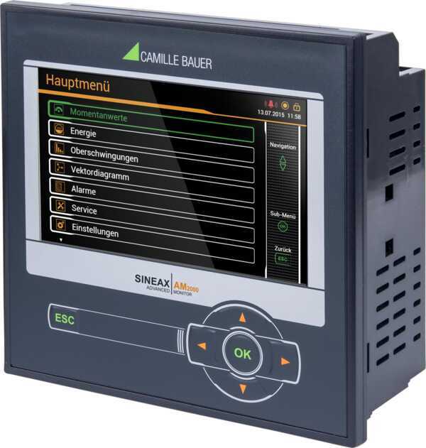 Transparente Überwachung von Netzqualität und Energieverbrauch. Der SINEAX AM2000 ist ein Kompaktgerät für die Messung und Überwachung in Starkstrom-Netzen. Er besticht durch die Qualität der Anzeige und die intuitive Bedienung. Das Gerät stellt eine breite Funktionalität zur Verfügung, welche sich mit optionalen Komponenten noch weiter ausbauen lässt. Das moderne, mehrsprachige Design erlaubt das Gerät intuitiv über die Geräte-Website (Option Ethernet erforderlich) oder das hochauflösende Farb-TFT Display (800x480px) zu bedienen oder zu parametrieren. Der Webserver ermöglicht die Fernabfrage, Anzeige und Analyse der Messdaten. Es ist keine zusätzliche Software erforderlich. . Netzzustand Bereitstellung aller Spannungen, Ströme, Leistungen, Leistungsfaktoren alle 10/12 Perioden Erweiterte Blindleistungsanalyse Varianz der Netzgrössen mit Zeitreferenz Energiefluss-Analyse Leistungsmittelwerte mit Trendanalyse zur Vermeidung von Lastspitzen Optional: Lastgang-Speicherung mit Schwankungsbandbreite (Min/Max) pro Intervall Wirk-/Blindenergie Klasse 0.5S (HT/NT, Bezug/Abgabe), programmierbare Auflösung Weitere Mittelwerte und Zähler mit wählbarer Basisgrösse Netzqualität Oberschwingungsanalyse nach IEC61000-4-7 Bewertung der Unsymmetrie der Spannungen und Ströme Vektor- und Drehrichtungsanzeige zur Anschlusskontrolle Kurvenformdarstellung Optionaler Störschreiber für PQ-Ereignisse (Spannungseinbruch, Spannungsüberhöhung, Spannungsunterbruch) nach IEC 61000-4-30 Ed.3 mit RMS1/2- und Kurvenformspeicherung Hardware-Option Analogausgänge ±20mA (2/4), Relaisausgänge (2), Digitaleingänge (4) aktiv / passiv, GPS-Zeitsynchronisation, Fehlerstromerkennung (Differenz- oder Erdleiterstrom), Temperaturüberwachung (Pt100, PTC), IEC61850 oder Profinet I/O Kommunikation Optional: Ethernet (Modbus/TCP, http/https, NTP, SFTP, SYSLOG), IEC61850, Profinet I/O, Modbus/RTU Automatisierter Daten-Export auf SFTP-Server (Option Ethernet erforderlich) Security (Option Ethernet erforderlich) Flexible Rollenbasierte Zugriffskontrolle Verschlüsselte Kommunikation via HTTPS Audit-Log registriert alle sicherheitsrelevanten Vorgänge, Unterstützung von SYSLOG für den Transfer an zentralen Überwachungsserver Client-Whitelist: IP-Adressliste zur Einschränkung der zugriffsberechtigten Rechner Digitale Firmware-Signatur: Manipulierte Firmware-Dateien können nicht ins Gerät eingespielt werden Weitere Eigenschaften 3 Strom- und 3 Spannungsmesskanäle mit 0.2% Genauigkeit, Direktmessung oder über Wandler Messkategorie 600V, CAT III (Spannung), 300V,CAT III (Strom) Standard-I/Os: 1 Digitalausgang, 1 Digitaleingang / -ausgang Datenlogger mit 16 GB Datenspeicher (Option) Abtastrate: 18kHz Überwachung und Alarmierung via Grenzwerte und Überwachungsfunktionen Für Schalttafel-Einbau 96x96mm Identische Bedienung wie Geräte der PQ/CU/DM-Reihe.