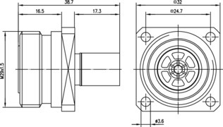 Telegärtner 7-16-Buchse mit Flansch cr/cr RG213/U 100024455