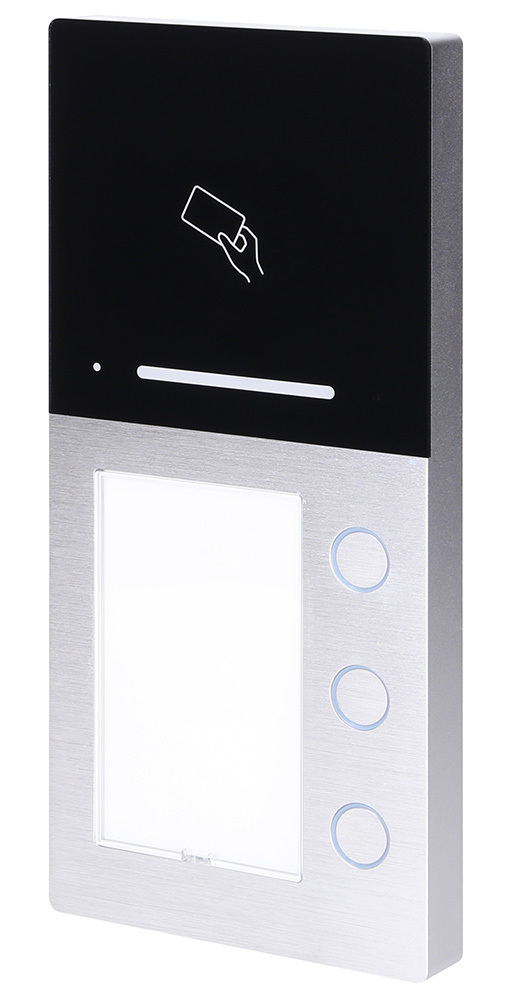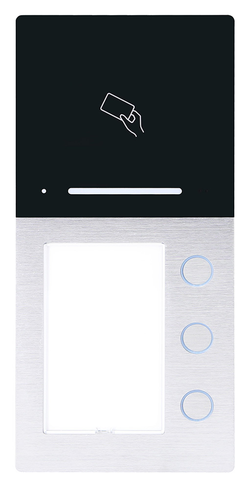 Audio AP Türstation Aufputz mit drei Klingeltasten, Aluminiumgehäuse, man. Lautstärkenregler, 3 Klingeltaster mit Namensschild LED-beleuchtet, Anschlussklemmen für Busleitung, potentialfreier Türöffnerkontakt, Potentiometer Türöffnerzeit, Belastbarkeit potentialfreier Türöffnerkontakt max. 1 A 24 V (DC) / 12 V (AC), LED-Rufanzeige, Anschlussmöglichkeit einer externen Türöffnertaste, Abmessungen 217 x 100 x 22 mm