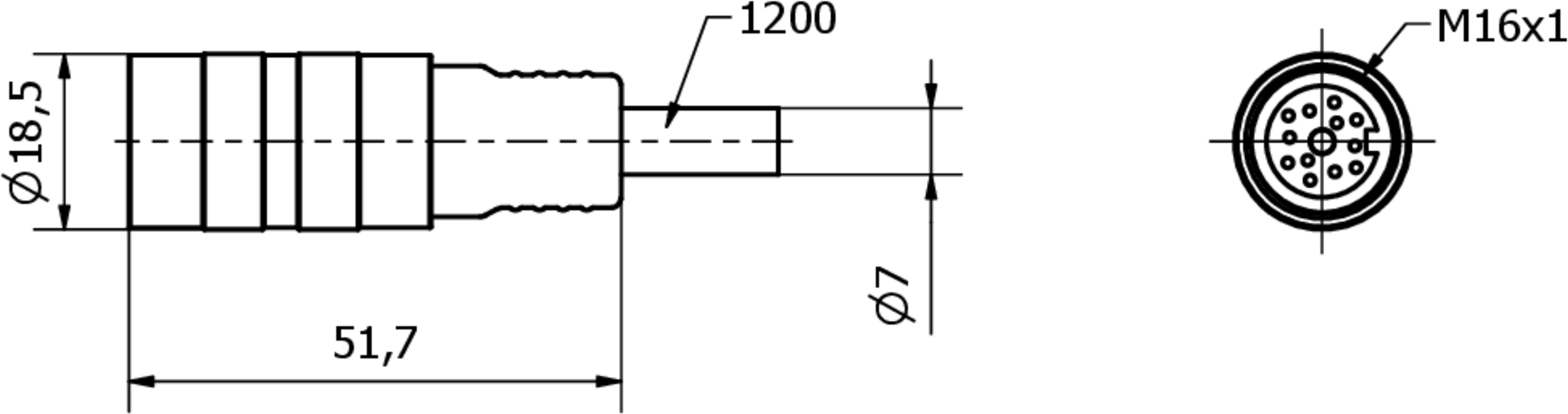 Ipf Electronic Anschlussleitung, 12m, M16 Dose 12polig gerade VKABF001