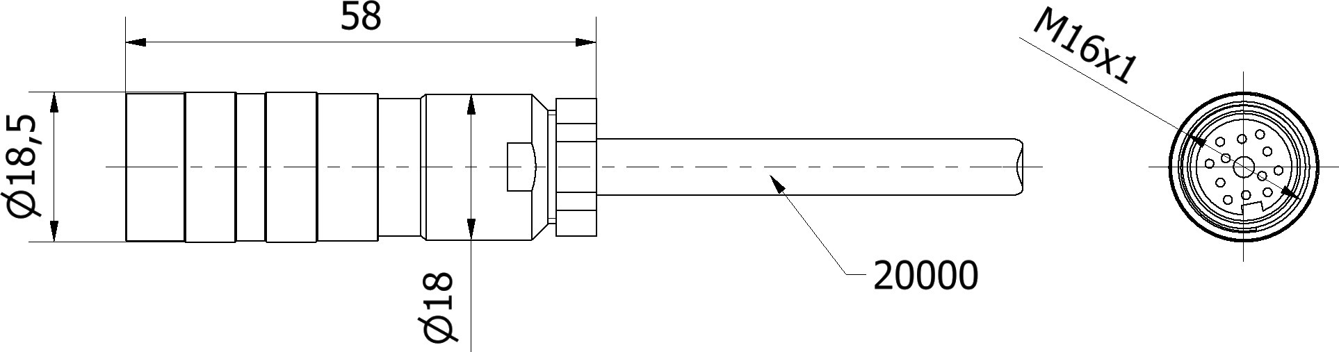 Ipf Electronic Anschlussleitung, 20m, Binder723 Dose VKB0E223