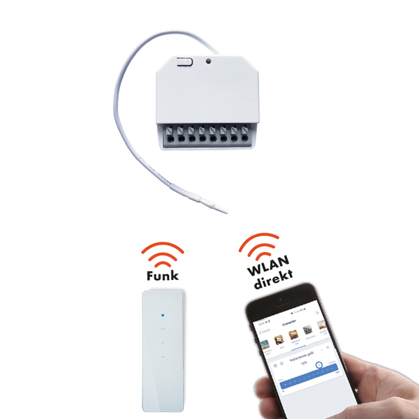 bedient werden. Mit dieser lassen sich Szenen und Timer ganz einfach realisieren und ständig überwachen. Der Empfänger ist zur Montage in der tiefen Schalterdose geeignet und hat die Abmessungen 50x50x35mm. Die maximale Schaltleistung liegt bei 300W. Die Versorgungsspannung beträgt 230V (50Hz).