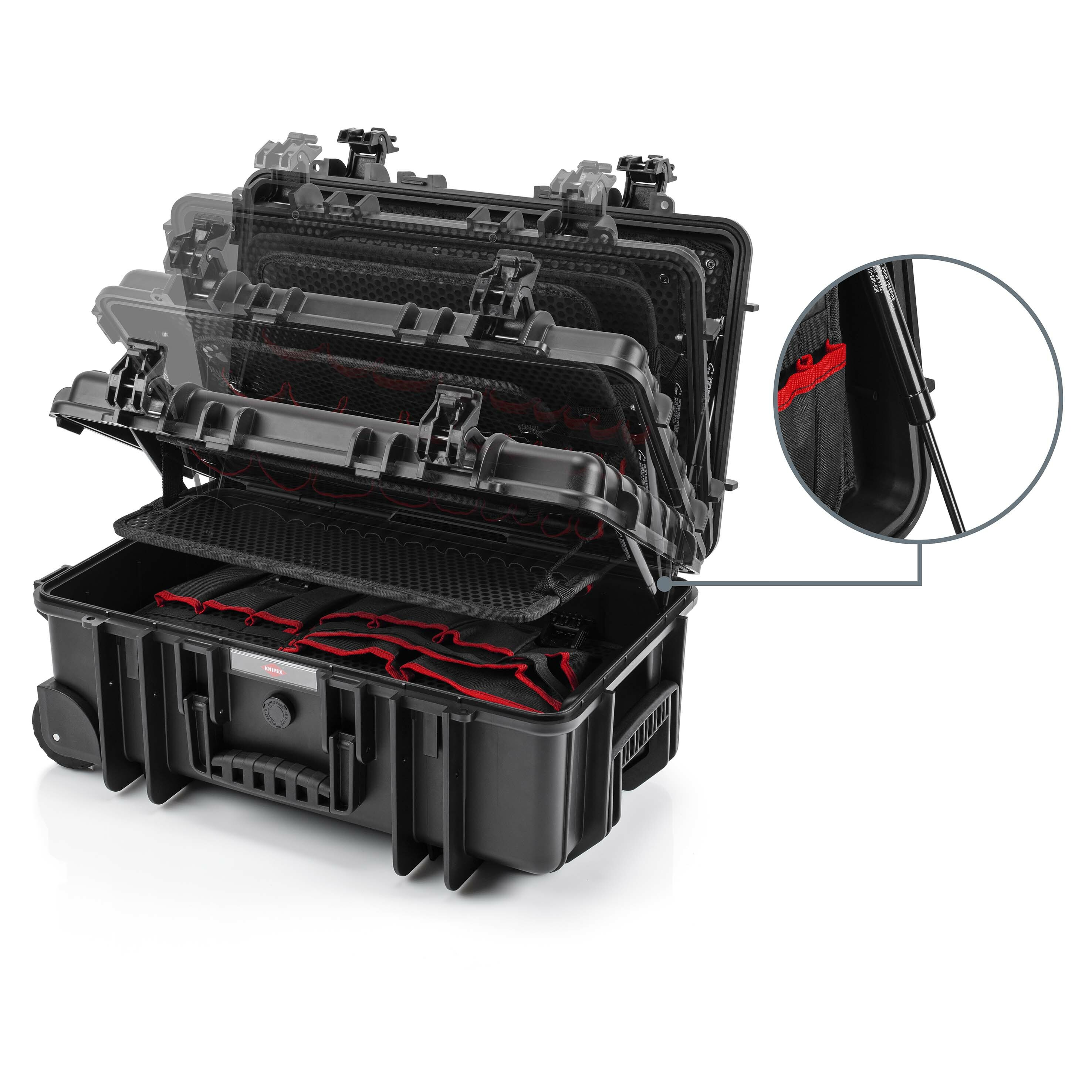 00 21 33 S Werkzeugkoffer Robust26 Move Sanitär Bestückt mit 12 KNIPEX-Werkzeugen, insgesamt 17 Markenwerkzeugen, teilweise VDE-geprüft nach DIN EN 60900. Insgesamt 80 Steckmöglichkeiten. Max. Zuladung: 25 kg. 26,4 Liter Fassungsvermögen. Flugtauglicher Koffer aus schlagfestem Polypropylen. Staub- und wasserdicht. Automatisches Druckausgleichventil. Temperaturstabil von -30C bis +80C. Vorrichtung für Vorhängeschloss. Dokumentenfach. Werkzeugtafeln aus schmutzabweisenden PP-Hohlkammerplatten mit bestückbaren Werkzeugtaschen und -schlaufen. Verschließbare Bodenschale individuell unterteilbar durch Aluminium-Trennstegesystem. Ergonomischer Zweikomponenten-Griff. Bereit, wenn du es bist: Für härteste Einsatzbedingungen schlagfestes Polypropylen, Staub-, wasserdicht und temperaturbeständig. Harte Arbeit wird smarte Arbeit: Maximale Flexibilität dank 19 Werkzeugtaschen und 61 Halteschlaufen sowie anpassbarem Aluminium-Trennstegesystem. Bringt dein Know-how bequem ans Ziel: Flugtauglich, mit ausfahrbarem, ergonomischen Haltegriff und leichtlaufenden Rollen für mehr Komfort. Lieferumfang: 1 x 00 11 01 Knipex TwinKey der Standard Schaltschrankschlüssel (92 mm), 1 x 86 03 300 KNIPEX Zangenschlüssel Zange und Schraubenschlüssel in einem Werkzeug (300 mm), 1 x 87 01 180 Knipex Cobra Hightech-Wasserpumpenzange (180 mm), 1 x 87 01 300 KNIPEX Cobra Hightech-Wasserpumpenzange (300 mm), 1 x 98 24 01 SL KNIPEX Schraubendreher (Slim) für Kreuzschlitzschrauben Phillips (PH1 x 80 mm), 1 x 98 24 02 SL KNIPEX Schraubendreher (Slim) für Kreuzschlitzschrauben Phillips (PH2 x 100 mm), 1 x 98 20 35 SL KNIPEX Schraubendreher (Slim) für Schlitzschrauben (0,6 x 3,5 x 100 mm), 1 x 98 20 55 SL KNIPEX Schraubendreher (Slim) für Schlitzschrauben (1,0 x 5,5 x 125 mm), 1 x 74 06 180 Knipex Kraft-Seitenschneider (180 mm), 1 x 0022086 Wera Sechskantschlüsselsatz (1,5 - 10 mm), 1 x 101-0300 Picard Schlosserhammer (300 g), 1 x 2281 Stabila Wasserwaage Typ 70 (30 cm), 1 x 01114 Stabila Holzgliedermaßstab Typ 1607 weiss (2.000 mm), 1 x 90 31 02 SB KNIPEX TubiX Rohrabschneider (180 mm), 1 x 90 22 10 BK KNIPEX BiX Schneider für Kunststoffrohre und Dichthülsen (72 mm), 1 x 9L 4494202 Lyra Tieflochmarker (2,8 mm),.