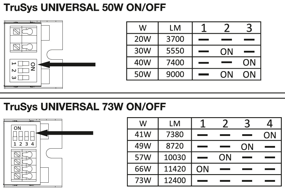 Max. Systemleistung: 50 W / 40 W / 30 W / 20 W