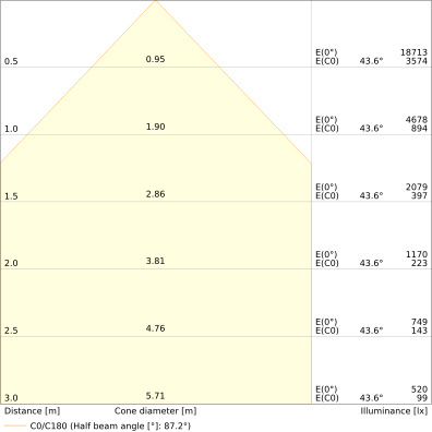 Bemessungslebensdauer L70/B50 bei 25 °C: 120000 h