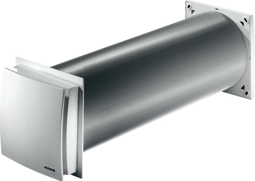 - Verpackungseinheit ALD 160 VA: Innenteil aus Kunststoff, Staubfilter ISO Coarse 30 % (G2), Wandhülse bis 500 mm mit Sturmsicherung und Schalldämmung, manuelle Klappe, rundes Außengitter aus Edelstahl inkl. Fliegengitter.