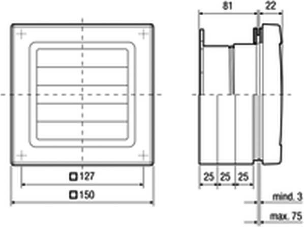- Für den Einbau von Kleinraumventilatoren der Gruppe ECA 100 ipro in Fenster und dünne Wände.