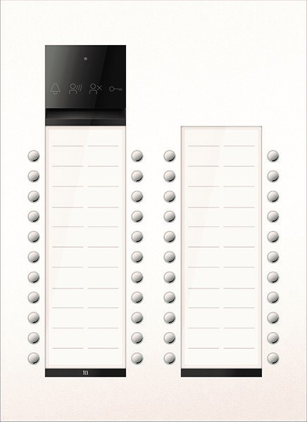 Grundfunktionen: Kommunikationstechnologie TCS:BUS und Video-2-Draht:BUS selbst erkennend, Tastenbeleuchtung Konturbeleuchtung (weiß), Material Klingeltaster Gehäuse Metall mit wartungsfreien Kontakten, Klingeltaste Zuordnung Innenstationen (Anzahl) 2, Namensschildbeleuchtung energiesparend mit LED, Namensschildglas bruchsicher, Geräte Highlights: Sprachverarbeitung digital, Dämmerungsschalter für Namensschild- und Tastenbeleuchtung, Funktional erweiterbar mit Relaismodul zum gezielten Türöffnen, zum Lichtschalten und für weitere Steuerbefehle, Barrierefrei-Symbole, Sprachverbindung: Sprachsteuerung Voll-Duplex, Gesprächszeit (s) 56, Türbereitschaftszeit (s) 56, optische Anzeigen: Anzeige Türöffnen blau leuchtendes Türöffnersymbol (Barrierefreiheit), Anzeige Sprechverbindung grün leuchtendes Sprechensymbol (Barrierefreiheit), Rufanzeige gelb leuchtendes Rufsymbol (Barrierefreiheit), Anzeige von Fehlern rot leuchtendes Fehler-Symbol (Barrierefreiheit), Fehleranzeige optisch und akustisch, Funktionen: beliebige Klingeltaste zum Lichteinschalten nutzbar, Lichtsymbol im Lieferumfang, Modulbauweise für Umrüstung bei Bedarf z. B., Kommunikationsmodul Audio und Video, Namensfeldglas mit Namensfeldträger, Gehäusemodul: Anschlüsse für Klingeltastenerweiterung und Relais, Steckplatz für EEPROM-Platinen, Türsummerton aktivierbar, Einstellbar über ein kombiniertes Drehrad , Sprechenlautstärke (während Sprechen) , Quittungston-Lautstärke (in Ruhe), Lautstärke Türsummerton (bei Türöffner), Türöffnerzeit (s) einstellbar, Rufzeit (s) 0 7,5, Datenschutz nutzbar gem. Anforderungen aus DSGVO einstellbar, Türöffner nur bei aktiver Türbereitschaft einstellbar, Montage: Bauform Unterputzgehäuse für den Außenbereich, Inbetriebnahme manuell, mit Servicegerät, mit Konfigurationssoftware, Technische Daten: Material Frontplatte Edelstahl, Schutzart Frontplatte IP44, Farbe Frontplatte RAL9010 (reinweiß), Oberflächenbehandlung Frontplatte pulverbeschichtet, minimale zulässige Umgebungstemperatur Gehäuse (°C) -25, maximal zulässige Umgebungstemperatur Gehäuse (°C) 55, Höhe Gehäuse (mm) 469 Breite Gehäuse (mm) 341 Tiefe Gehäuse (mm) 41,5, Höhe Frontplatte (mm) 469 Breite Frontplatte (mm) 341 Tiefe Frontplatte (mm) 1,5, Höhe UP-Kasten (mm) 428 Breite UP-Kasten (mm) 313 Tiefe UP-Kasten (mm) 40, Versorgungsspannung (V) 24 ± 8 %, Versorgungsspannung (V) Video-2-Draht:BUS 32 ± 8%, 2-Draht Ruhe Eingangsstrom I a (mA) 5,60, 2-Draht Eingangsstrom I a max (mA) 131, 3-Draht Ruhe Eingangsstrom I a (mA) 0,26, 3-Draht Ruhe Eingangsstrom I P (mA) 4,8, 3-Draht Eingangsstrom I P max (mA) 62, Video-2-Draht:BUS Betrieb, V2D 2-Draht Ruhe Eingangsstrom I av (mA) 5,3, V2D 2-Draht Eingangsstrom I av max (mA) 76, V2D 3-Draht Ruhe Eingangsstrom I av (mA) 0,36, V2D 3-Draht Ruhe Eingangsstrom I Pv (mA) 4,7, V2D 3-Draht Eingangsstrom I Pv max (mA) 47