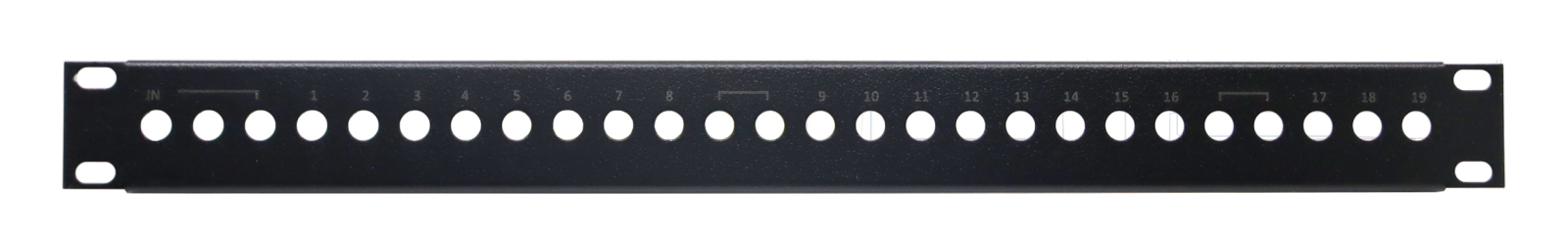-Frontblende 1HE mit einem Aufnahmevermögen von bis zu 26 F -Verbinder . Speziell für die Installation von Verteilern und Abzweigern der Televes F-Serie oder 26 F-Verbinder.